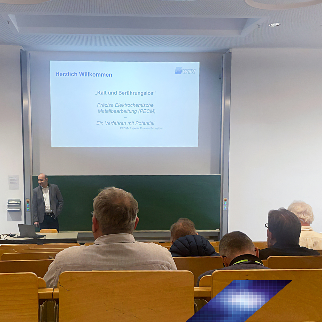 Wir bedanken uns bei Herrn Thomas Schneider von der Firma Werkzeugtechnik Niederstetten GmbH & Co. KG für den interessanten Vortrag – Kalt und berührungslos: Präzise Elektrochemische Metallbearbeitung (PECM)!
